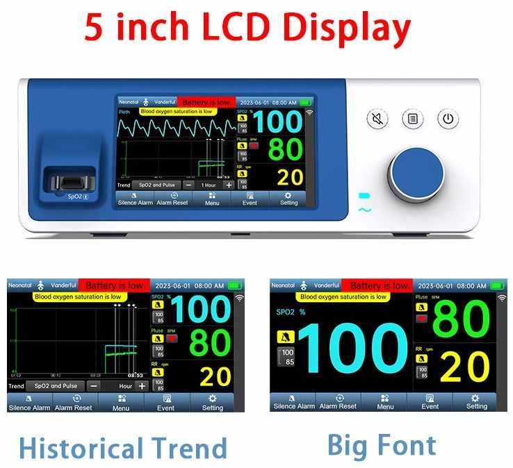 The Empiric brand make in india pulse oximeter is easily and intuitively operated lcd display. The alarm limits and volume can be individually set by the user to match the monitoring situation. The Medvalley is equipped with a lithium-ion battery that provides up to 8 hours of continuous operation.